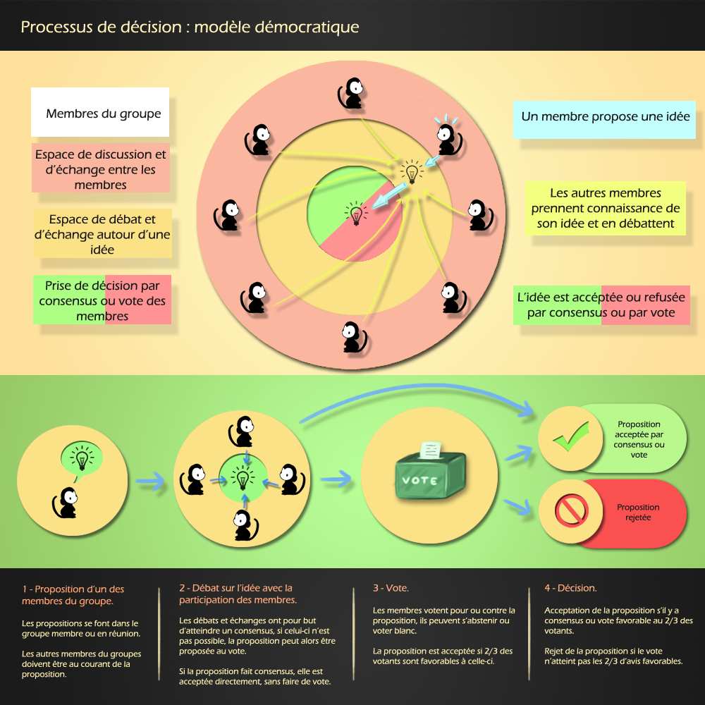 Cet article de l’IRASD met en perspective ce que nous même, au 4eme Singe, nous expérimentons, “une démocratie participative imbriqué”. Certes notre approche communautaire à pour colonne vertébral “l’information” et le champ de nos décisions se limite à un contexte de projet. Pourtant, il est bien question ici, de ce que nous sommes en capacité de construire avec une telle organisation, “d’anarchisme structurée”, qui fait notre force.