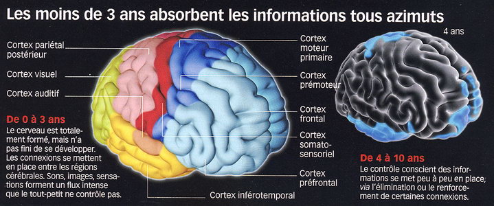 Ce que nous montrent justement les neurosciences, c’est que les cerveaux des bébés et des enfants ne sont pas aussi matures que les nôtres. Par exemple leur cortex préfrontal, qui permettrait – entre autres choses – la gestion des émotions, n’est pas encore mûr (contrôle inhibiteur). Ce n’est qu’à l’âge de 5-6 ans qu’ils pourront maîtriser seuls leurs émotions (4).