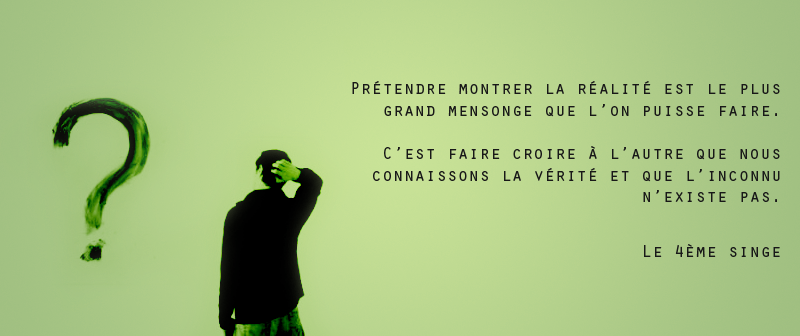 En tant que média alternatif, nous ne dérogeons pas à cette règle, bien que notre situation soit bien différente. Seulement, contrairement à certains médias dits “dominants”, nous préférons assumer ce rôle, car nous sommes conscients de notre subjectivité et de notre incapacité à prétendre définir le réel. Ici, au 4ème singe, nous vous donnons notre manière de voir le monde, qui n’est pas la réalité du monde. Et ceci est important à préciser. Nous ne saurions être objectifs, pas plus que Le figaro, Le monde, TF1 et consorts, qui ne le sont pas non plus, mais qui prétendent l’être.