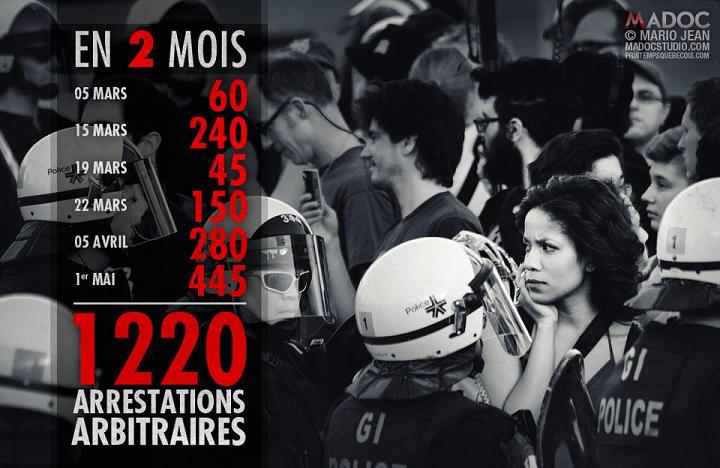 Ces arrestations s’achèvent par la remise d’un constat d’infraction au règlement municipal d’une valeur de 637 $. Sauf qu’entre l’arrestation, le plus souvent musclée et sans ménagement, et la remise du constat, les personnes prises en souricière (techniques utilisées depuis des mois pour arrêter d’un seul tenant des centaines de manifestants) sont soumis à une détention de plusieurs heures, déportés en bus vers un camp de transit à plusieurs kilomètres pour vérification d’identités, saisies de matériel, fouilles et très certainement fichés en tant qu’activistes politiques. Tout cela pour un simple constat d’infraction qui pourrait être simplement remis à chaque individu sur place comme c’est le cas pour une infraction au code de la route… La tenue d’une enquête publique sur les agissements et les abus de la police demandée depuis des mois ne semble pas intéresser la première ministre.